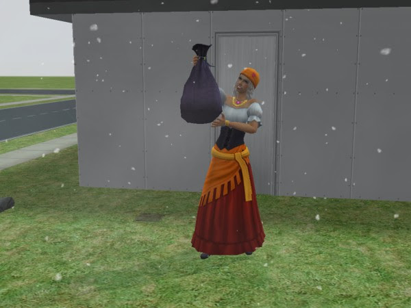 Ennustaja eukko toimittaa taikalampun! Huomaa taas että mulla on nää kuvat sekaisin, koska edellisessä osassahan tuo taikalamppu ehti jo vilahtaa jossakin kuvassa. .-D Kukaan ei ollut innokas esittämään toivomuksia lampun hengelle, joten lamppu jäi vain lojumaan pihalle.